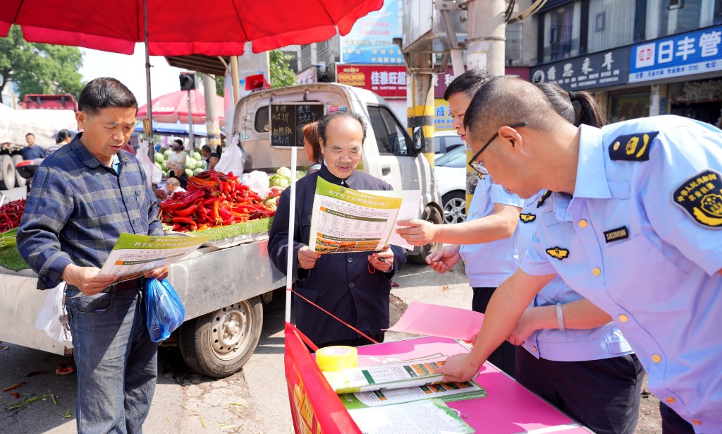 活动现场,人头攒动,一片热闹非凡的景象。醴陵市农业综合行政执法大队的工作人员与泗汾镇农业综合服务中心的农技人员紧密协作,在集市上精心设置了咨询服务台。在这里,他们为过往的农民朋友们提供专业且全面的农业技术咨询服务。面对农民在实际生产过程中遇到的各类问题,工作人员都耐心倾听,仔细解答,并给出科学合理、切实可行的建议。