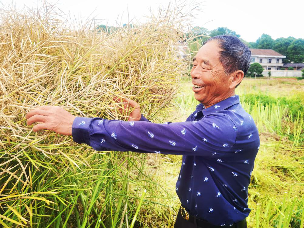 “这是我种油菜十年来的最好收成。”合作社的带动户浦口镇保丰村老姚乐呵呵地说,今年种植的油菜亩均产籽128.4公斤,亩均收益增加200元,明年将扩大种植面积。