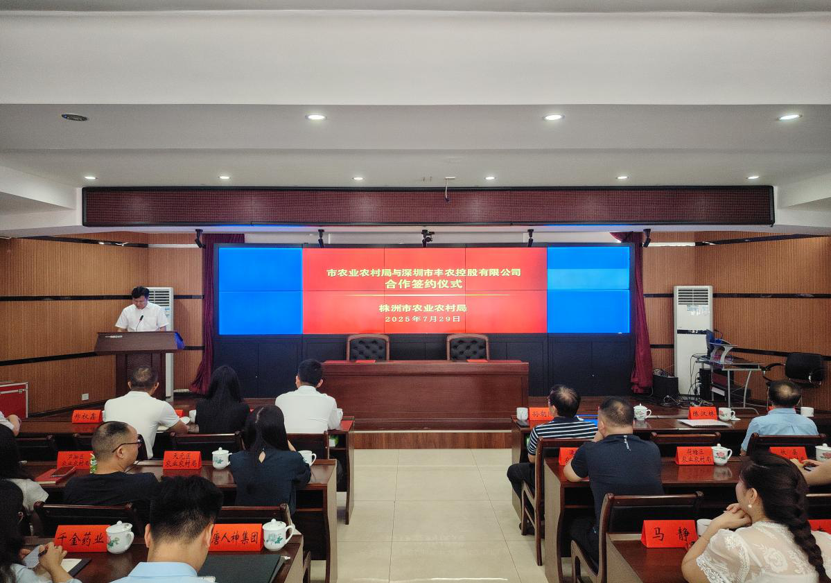 7月29日,株洲市农业农村局与深圳市丰农控股有限公司正式签署合作协议,此次签约标志着“株洲市强农网院”正式上线,双方在乡村振兴人才培育、智慧农业建设、农业产业链升级等领域合作全面启动。株洲市农业农村局党组书记、局长刘继承出席活动并致辞。