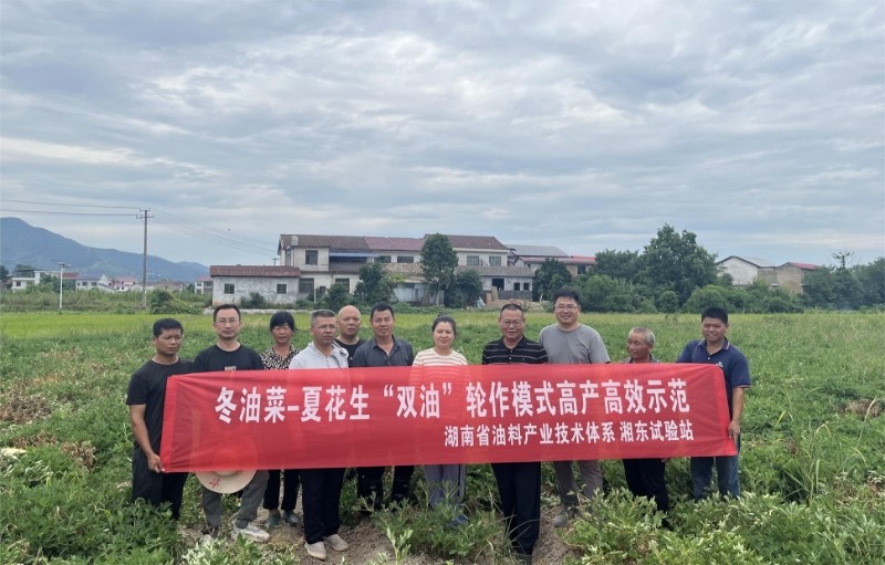 本次冬油菜-夏花生“双油”轮作模式高产高效示范基地总面积3.5亩,由省油料产业技术体系湘东试验站联合湖南农业大学花生团队提供技术支撑,是醴陵市积极落实我省今年花生“一扩双提”行动的样板示范基地。该模式良种搭配良法,在收获一季油菜的基础上,轮作一季花生,有效增加了耕地复种指数,大幅度提高农民油料作物的种植效益。