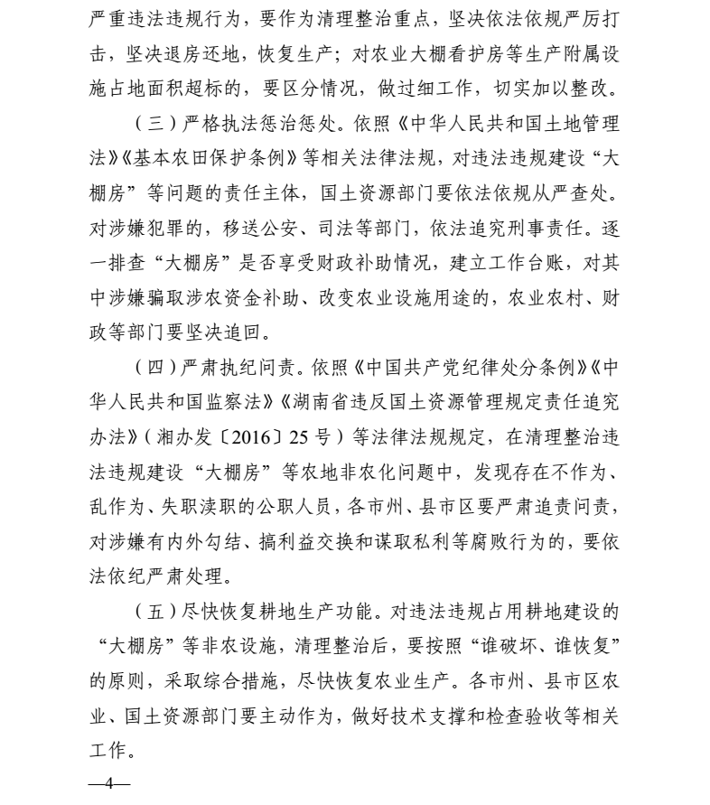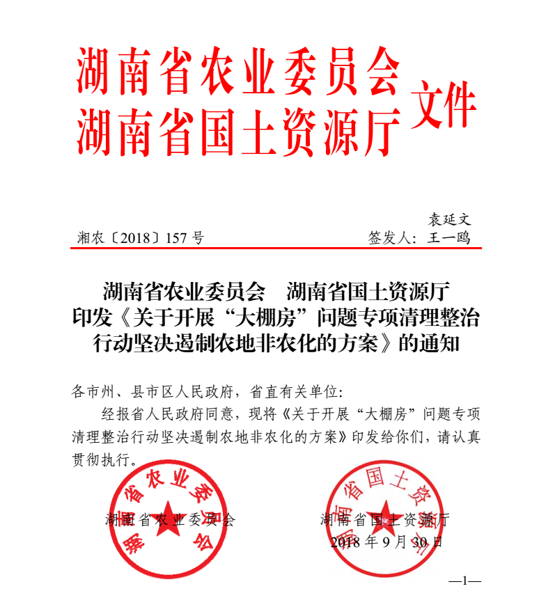 湖南省农业委员会 湖南省国土资源厅 印发《关于开展“大棚房”问题专项清理整治行动坚决遏制农地非农化的方案》的通知