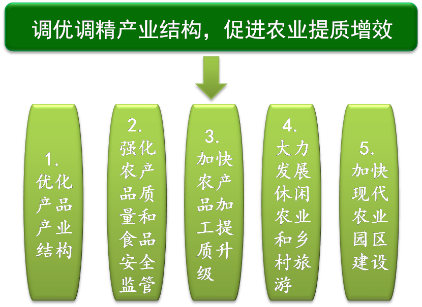 ◎加快构建粮经饲协调发展三元种植结构。发展优质农产品。调优生猪养殖布局。加快发展草食畜牧业和标准化规模养殖。
