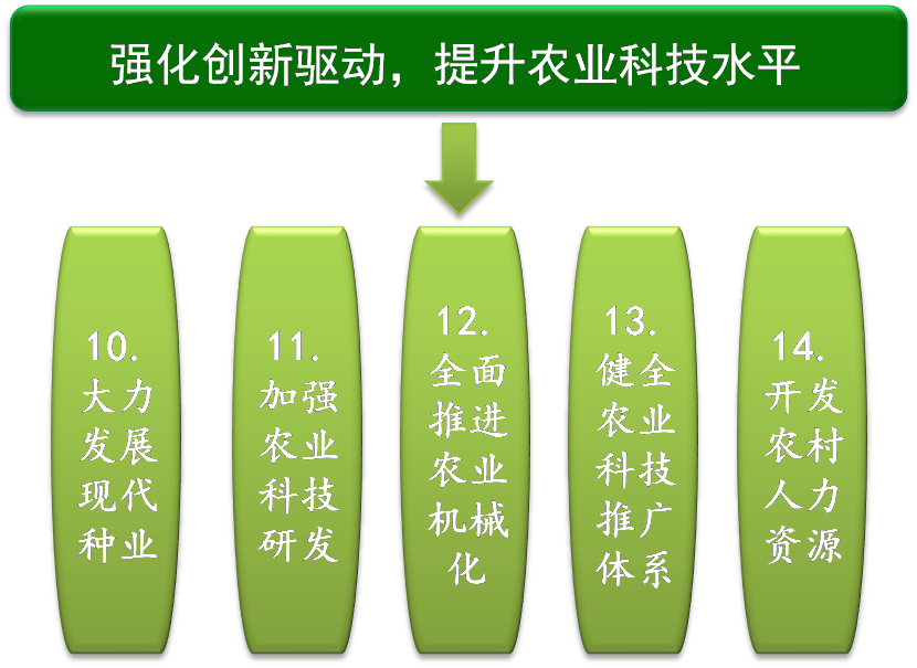 ◎加快建立以政府为主导、社会力量广泛参与的多元化农业科研投入体系。着力打造科技创新平台,整合科技创新资源,建设科技创新团队。