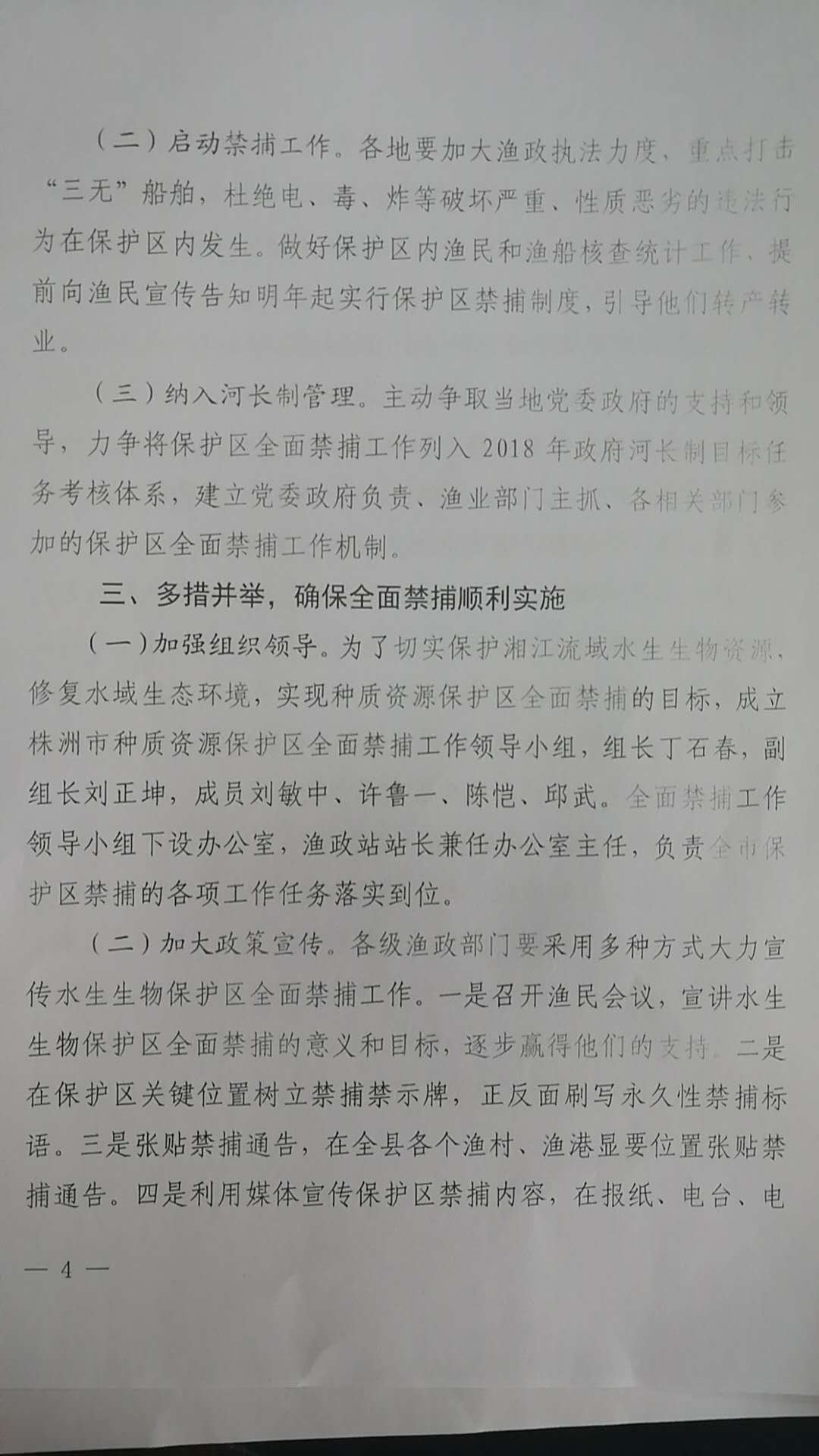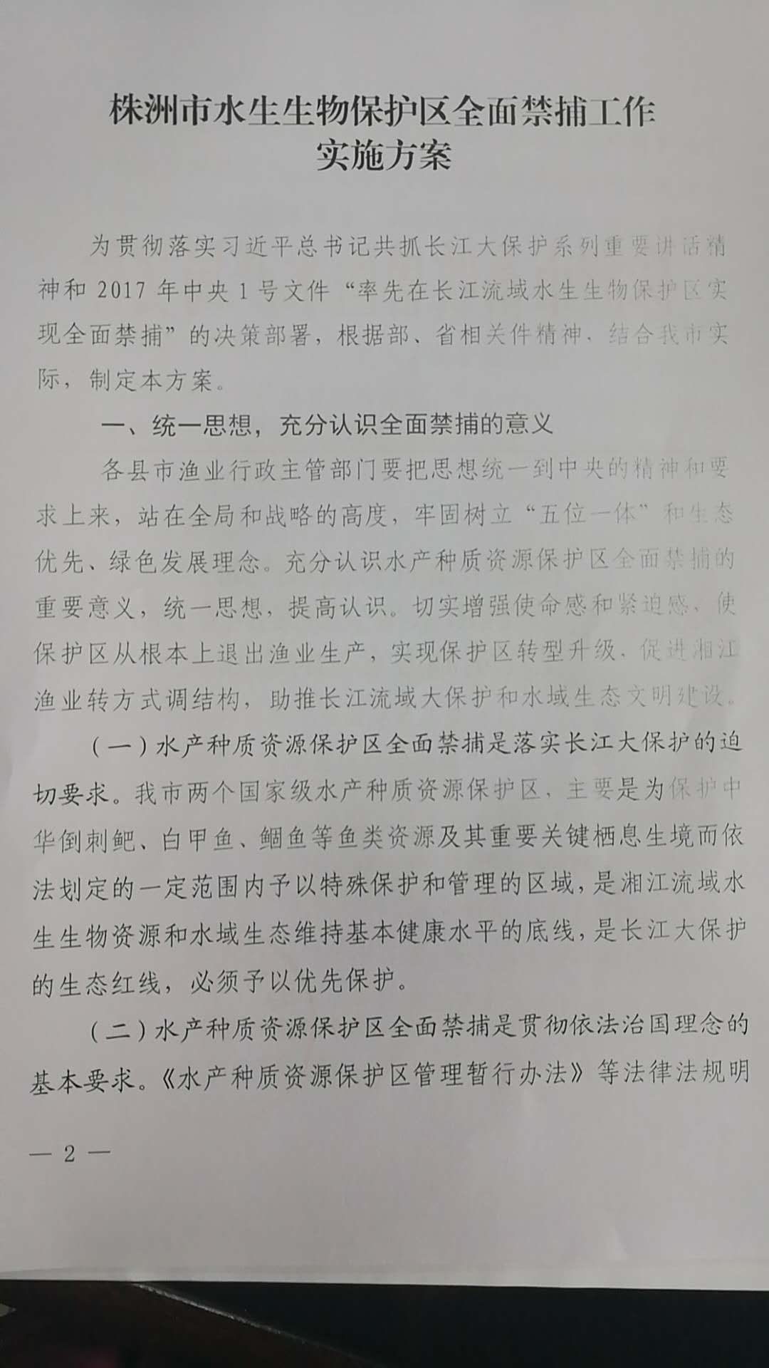 株洲市畜牧兽医水产局关于印发《株洲市水生生物保护区全面禁捕工作实施方案》的通知