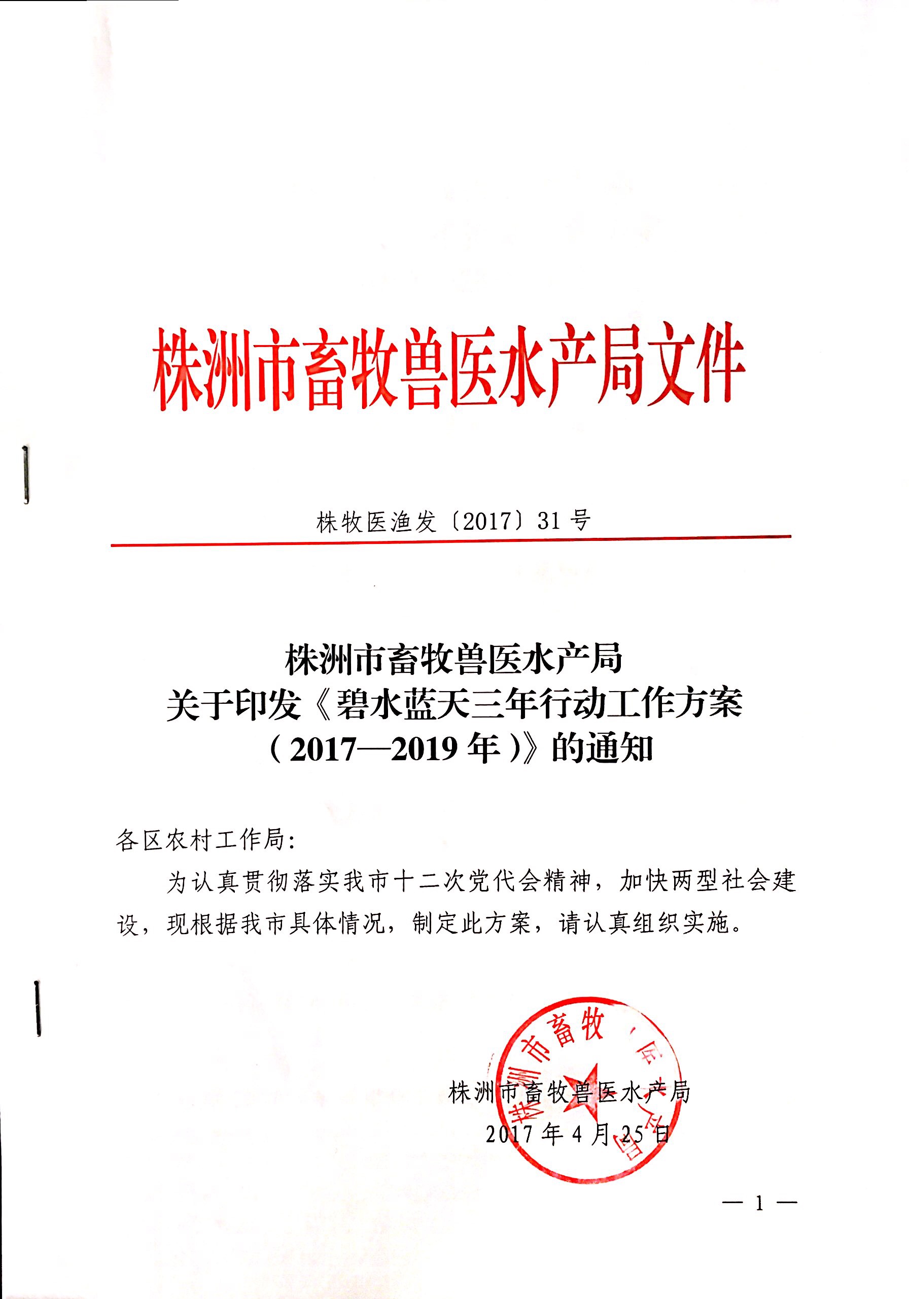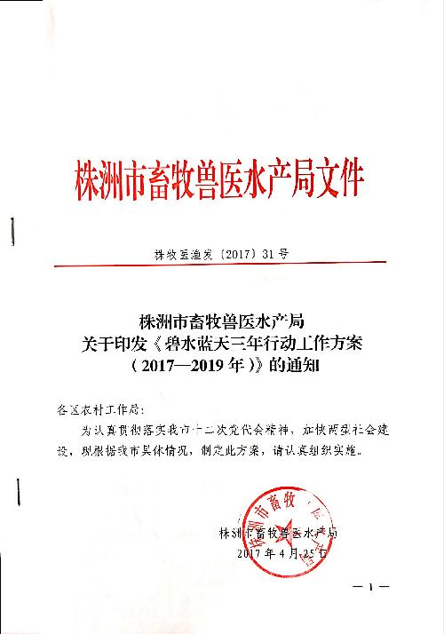 关于印发《碧水蓝天三年行动工作方案(2017-2019年)》的通知