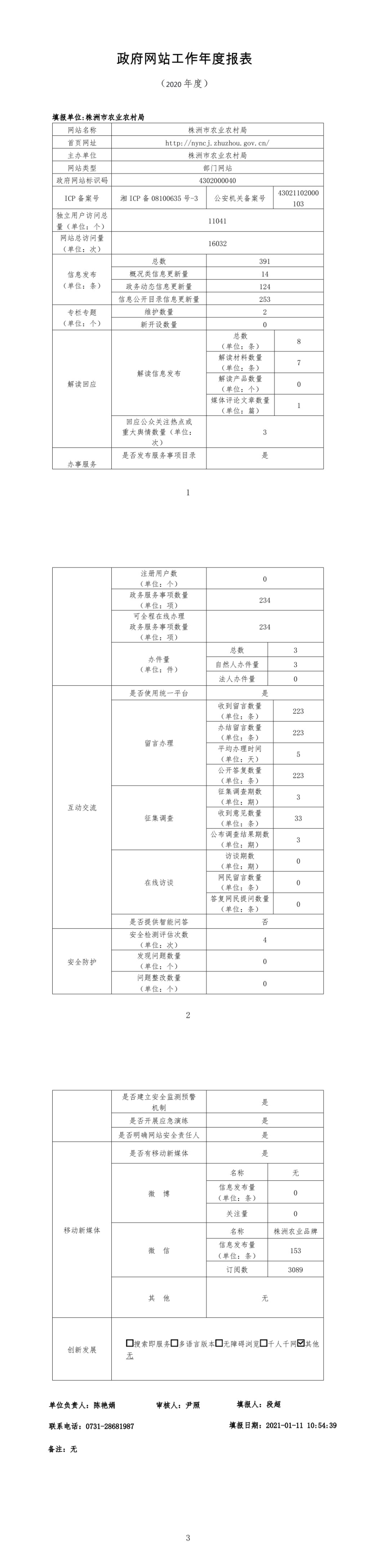 株洲市农业农村局政府网站工作年度报告(2020年度)